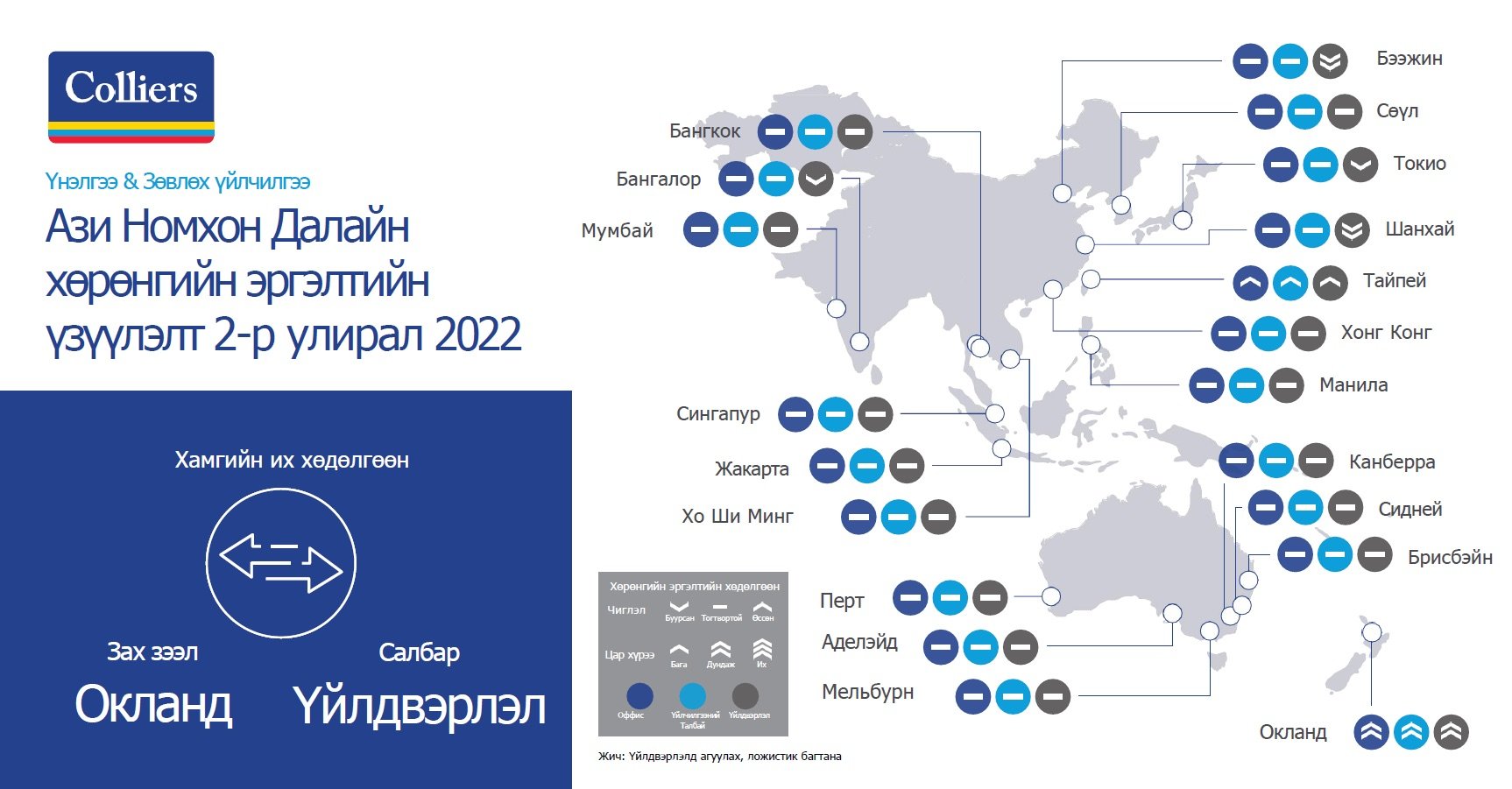 Хөрөнгийн зах зээл & Хөрөнгө оруулалт | Q2 2022 Ази, Номхон далайн орнуудад үл хөдлөх хөрөнгийн томоохон зах зээлүүд 2022 оны 2-р улиралд өндөр үзүүлэлттэй гарсан нь гол төлөв арилжааны болон аж үйлдвэрийн сегмент дэх эрэлтээс шалтгаалж, дотоодын болон олон улсын хөрөнгө оруулагчид геополитик болон макро эдийн засгийн тодорхойгүй байдлын эсрэг урт хугацааны үзэл баримтлалтай байсан.